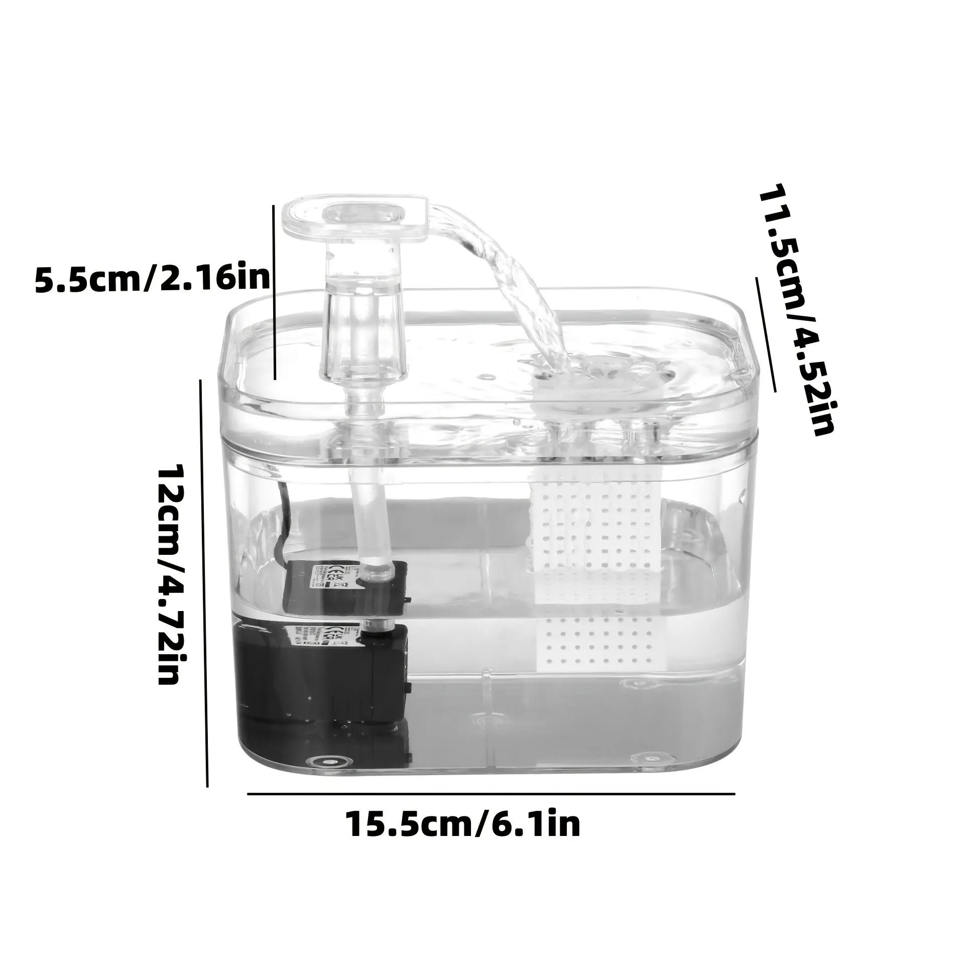 This cat water dispenser is designed to provide circulating, filtered drinking water for pets. The 1.5L reservoir supports routine refills while keeping water available throughout the day. An enclosed internal design helps route water through the circulation and filtration path. Use with compatible replacement filters as needed for ongoing use.