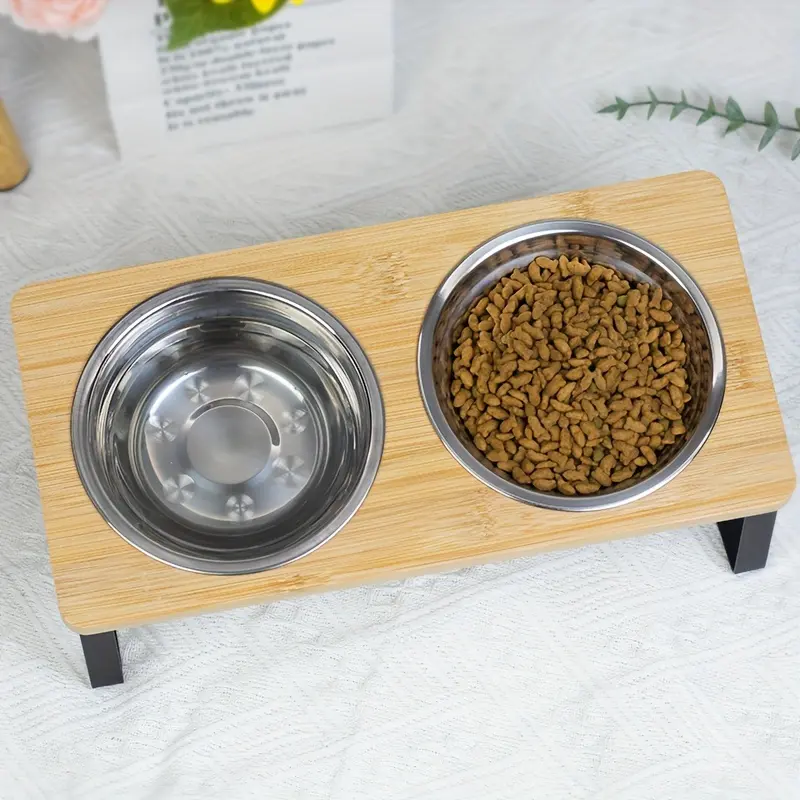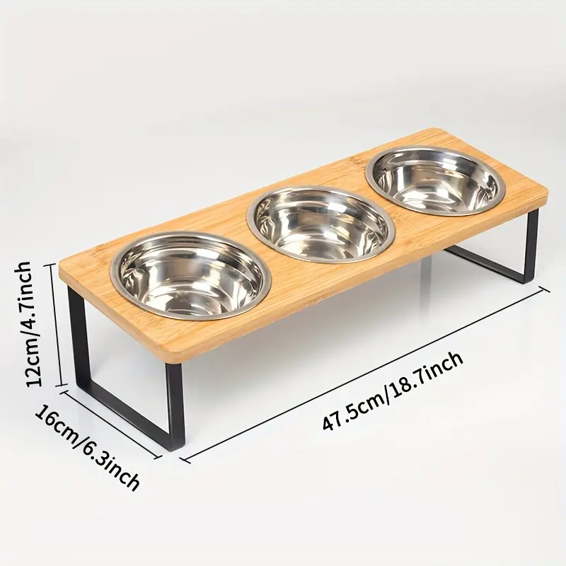 - Structural Frame Design: Elevated stand construction supports a stable feeding setup for two bowls.