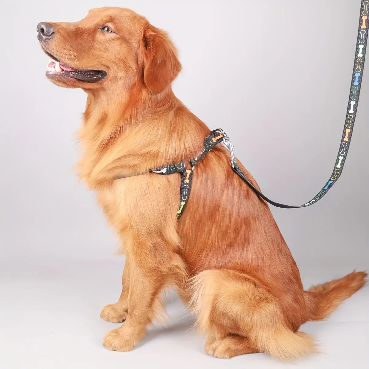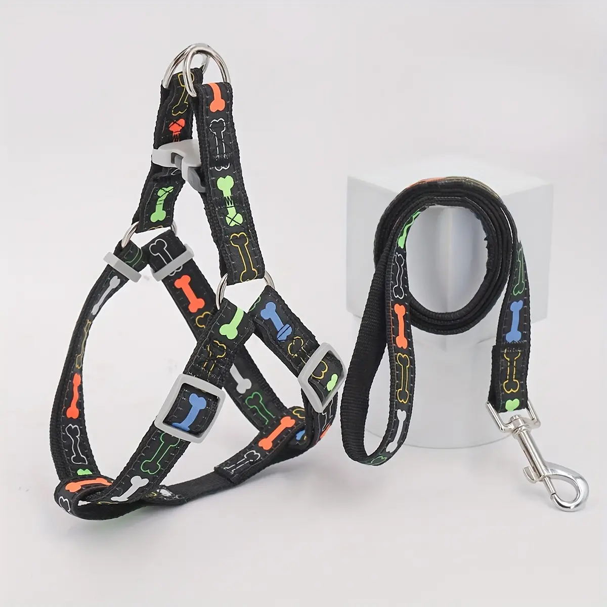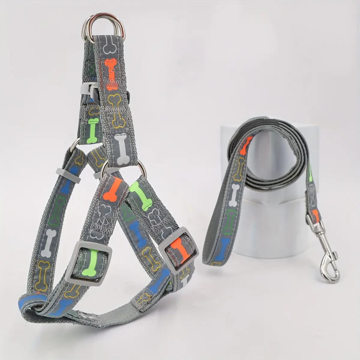 Bone-Shape Pet Harness and Leash for Walking & Control with Chest and Back Triangle Design