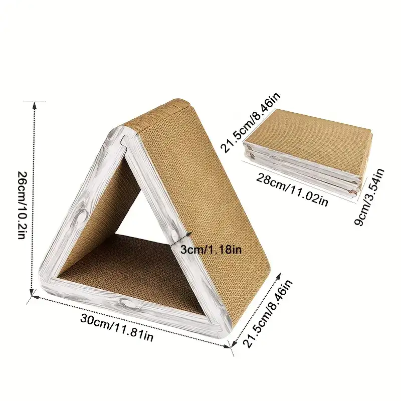 This collapsible cardboard scratch pad is designed to provide a dedicated surface for scratching and everyday activity. The corrugated construction offers a textured contact surface while keeping the pad lightweight and easy to handle. A six-sided, triangular form helps it sit steadily during use. It folds down for simpler storage when not in use.
