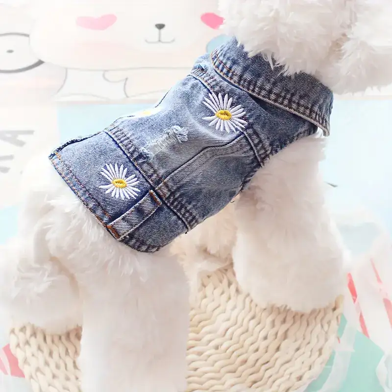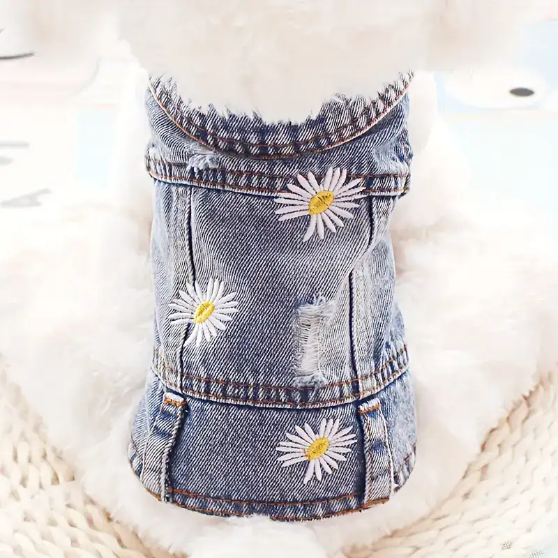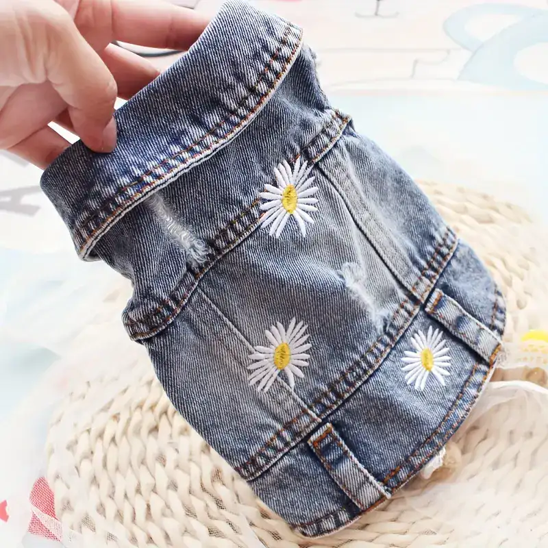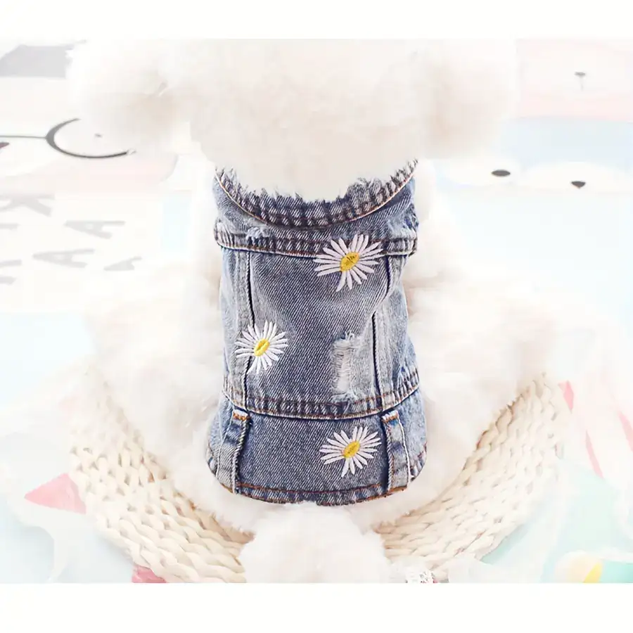 Daisy Faux Denim Pet Vest for Small Dogs, Spring and Autumn Wear