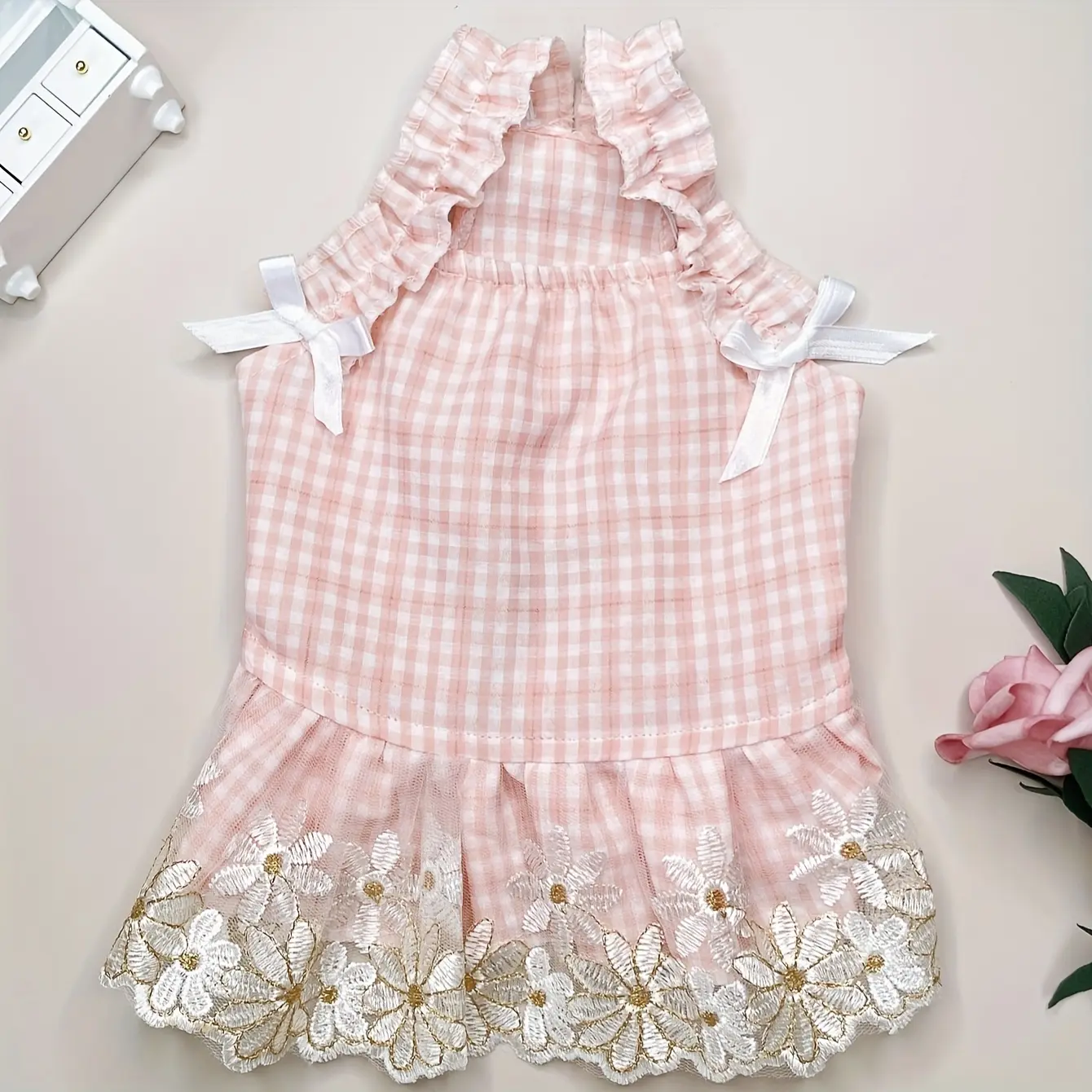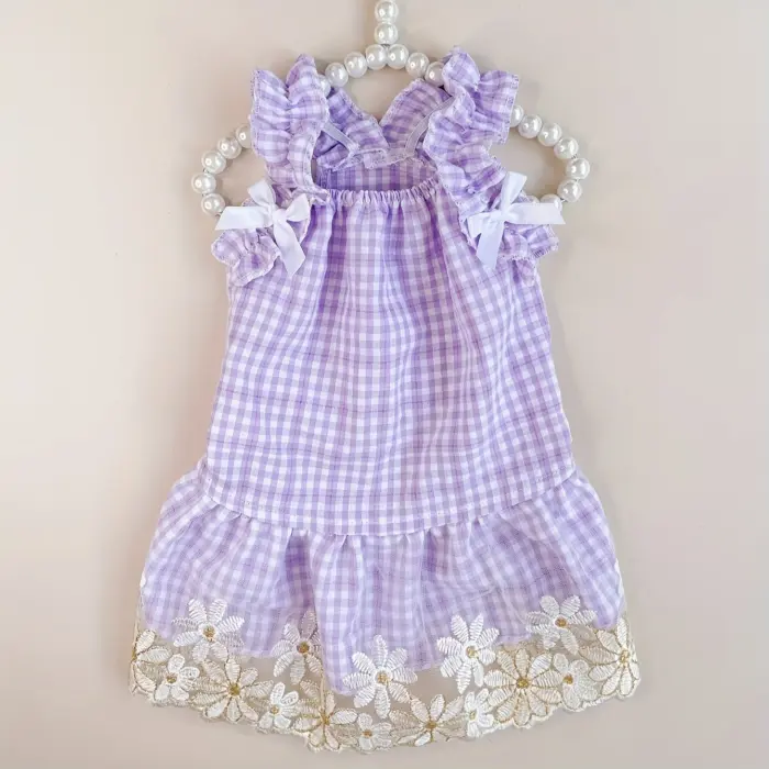 This dog dress is designed for pet wear and costume styling. It features a plaid pattern with a purple color finish for a coordinated look. The pullover style supports quick on and off during handling. Intended for small to medium dogs based on the product naming.