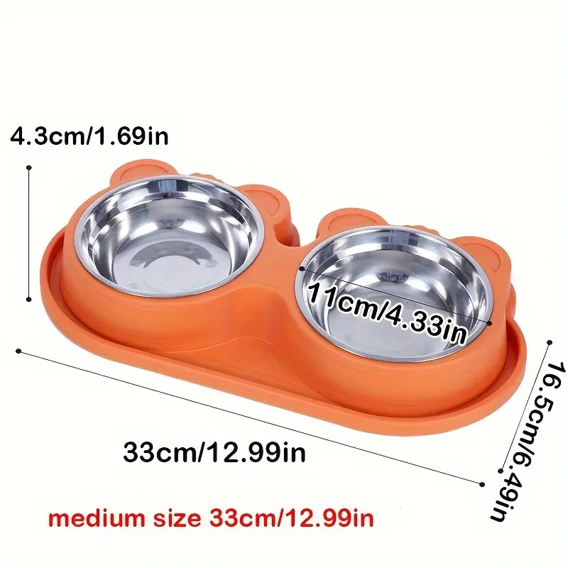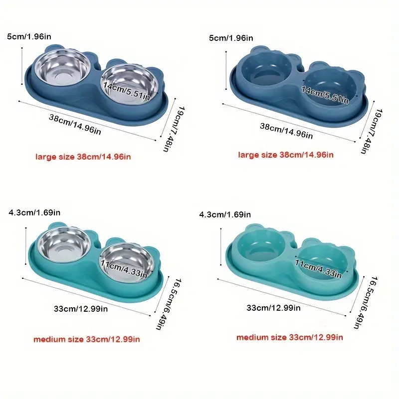 • Structural Frame Design: The stand holds two bowls in a fixed position to help limit shifting during use.