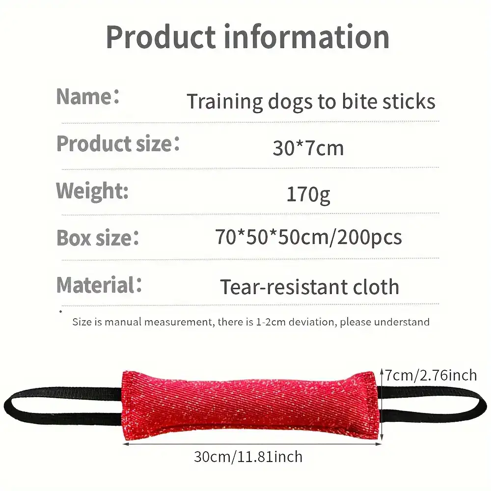 This dog bite stick is designed for controlled chewing and interactive tug play. The dual-handle design helps provide a secure grip during handling. Its durable nylon construction is intended for repeated use during play sessions. Suitable for puppies and adult dogs under supervision.
