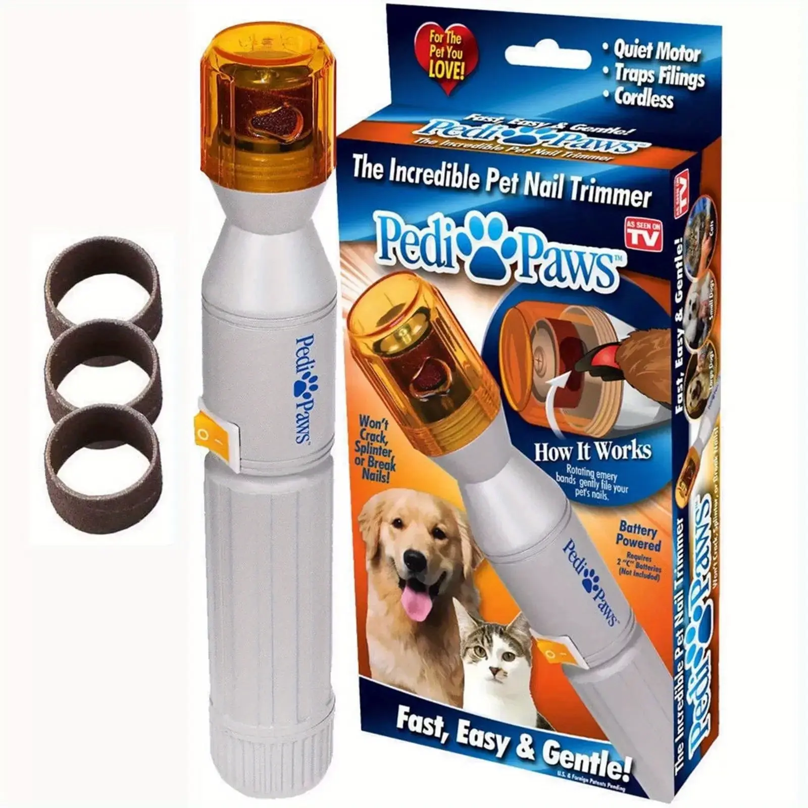 This electric pet nail clipper and grinder is designed for trimming and smoothing dog and cat nails. The powered grinding head supports controlled shaping to help reduce sharp edges after trimming. A quiet motor design helps lower operating noise during use. The handheld form factor is intended for steady grip and guided handling during grooming.