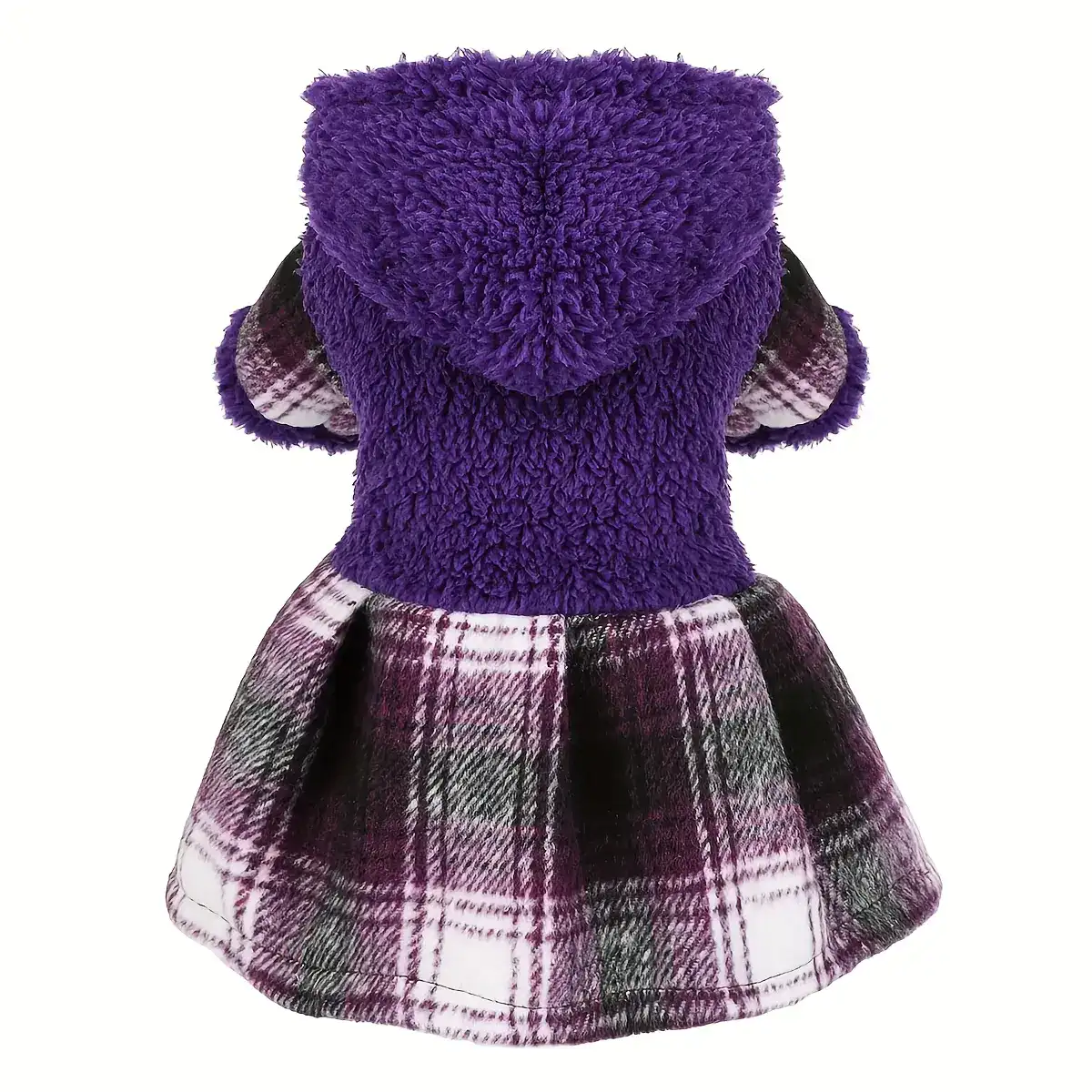 This hooded dog sweater is designed to provide an extra layer for small pets in cooler conditions. The fleece construction offers a soft feel while helping reduce exposure to cold air. A pull-on style supports quick on and off for routine wear. The plaid pattern adds a classic look without affecting movement.