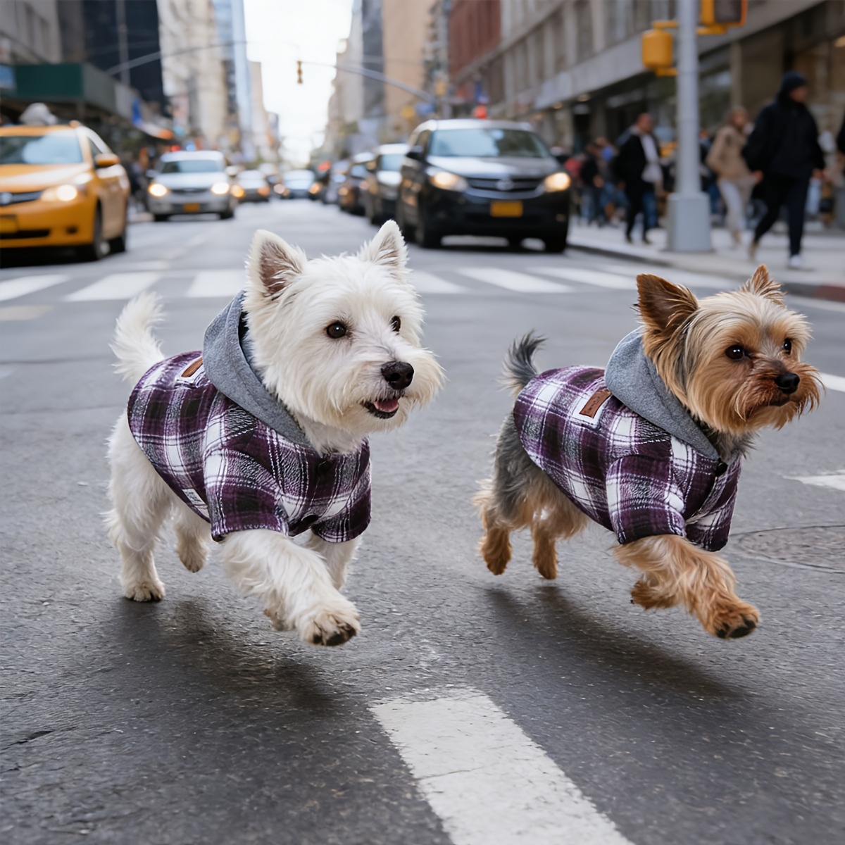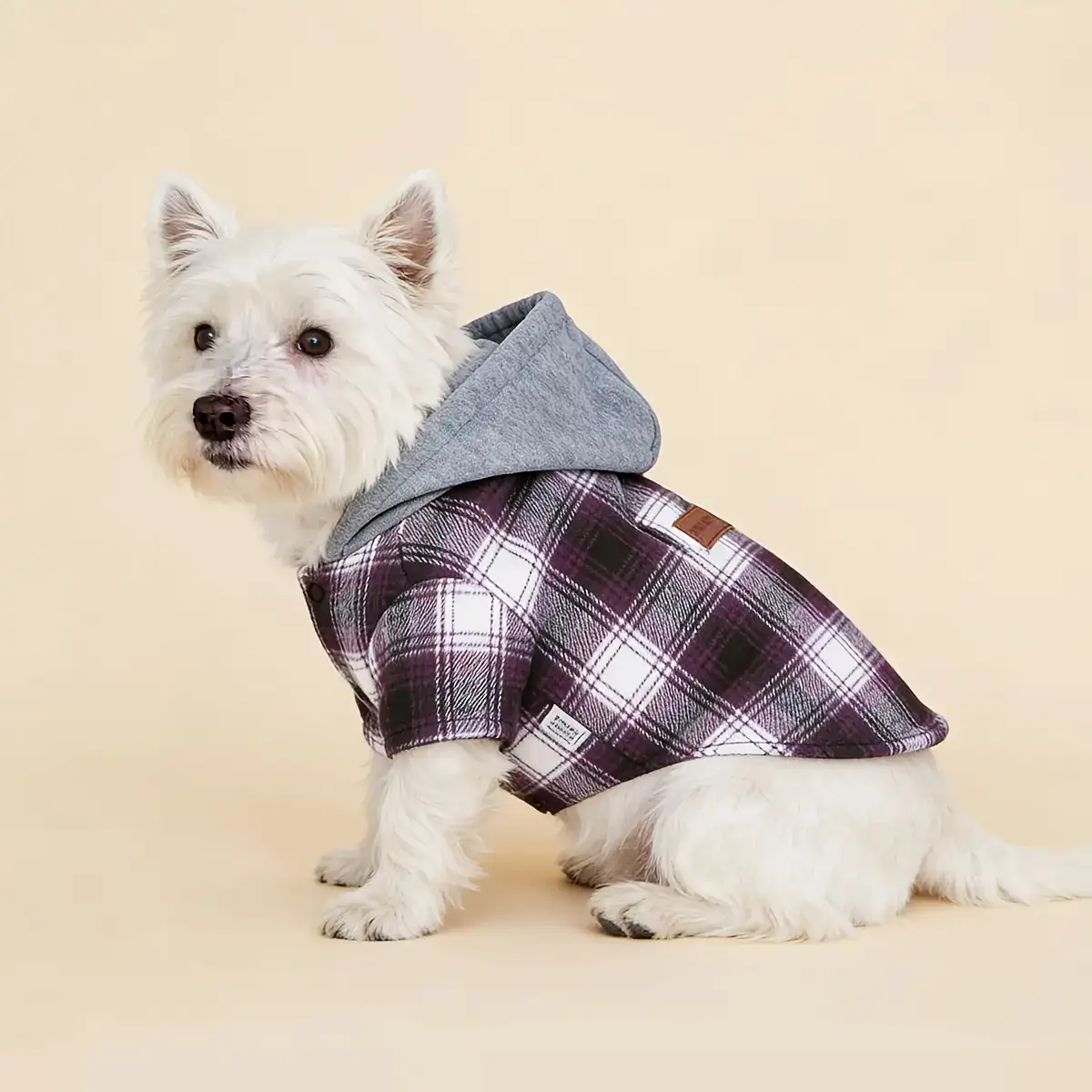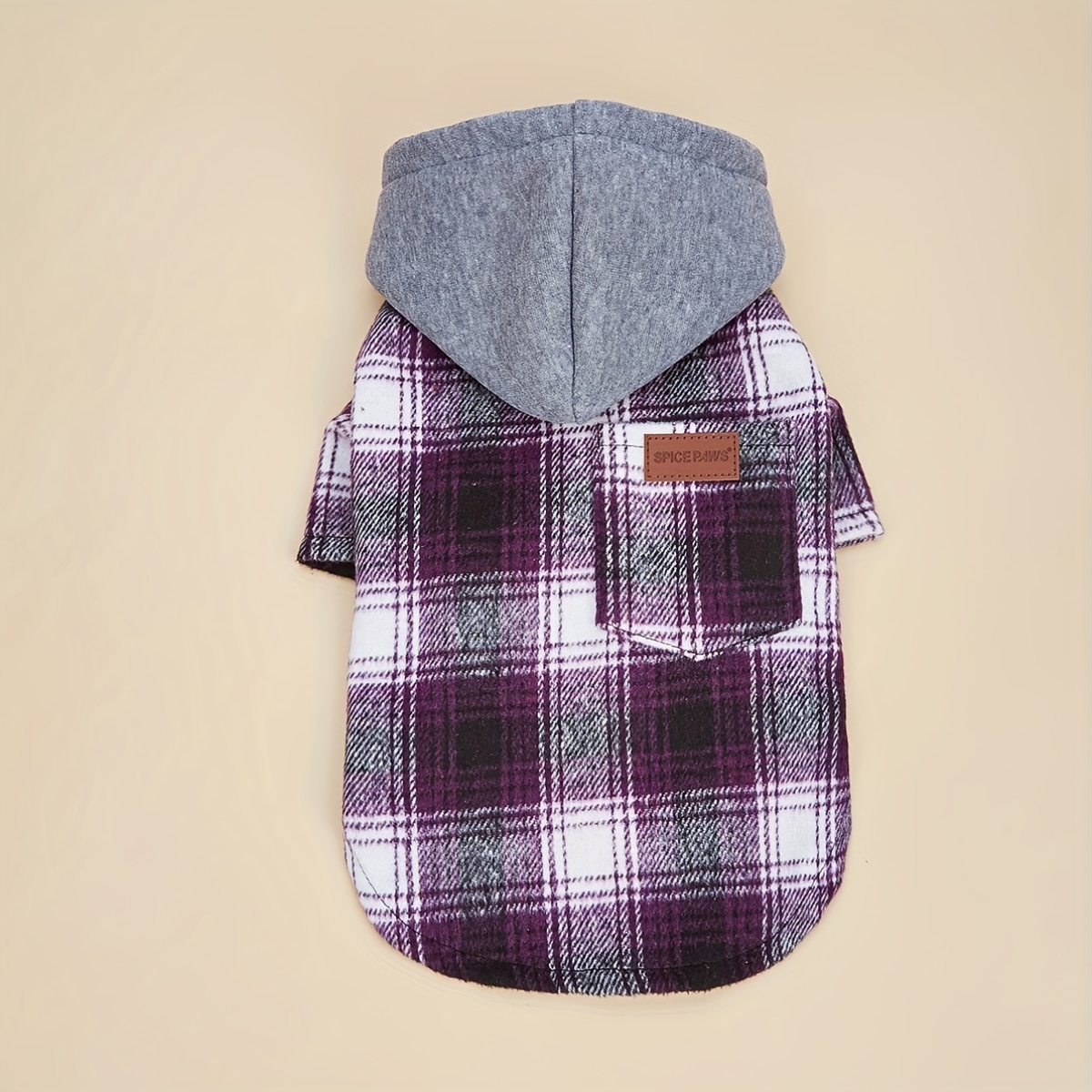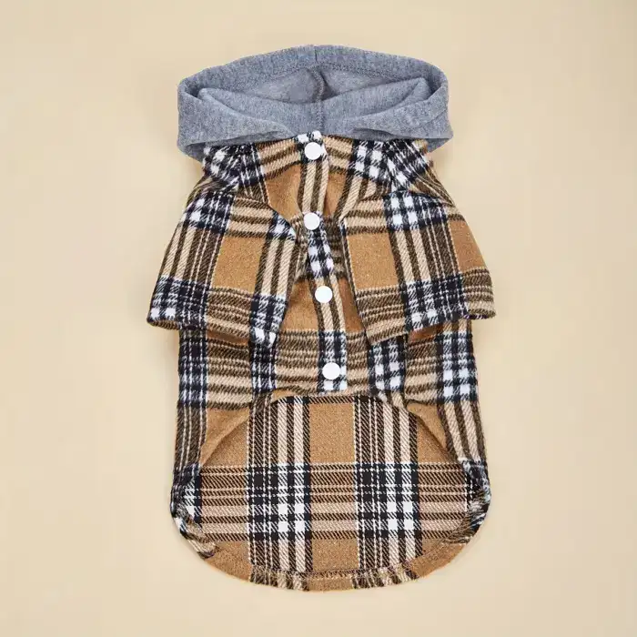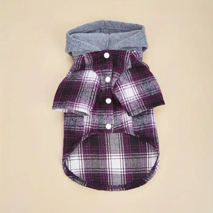 This hooded color-block jacket is designed for pets for outdoor wear in cooler weather. The outer layer helps provide a light barrier against wind and everyday contact during walks. A pullover-style body and hood support quick on-and-off handling. The fabric is intended for routine care with a machine-washable construction.