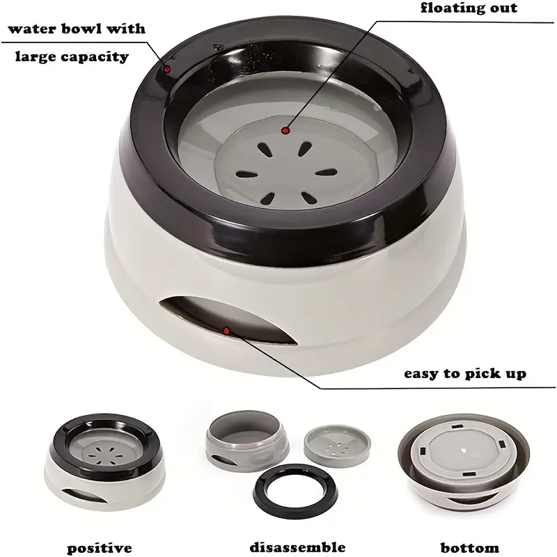 This pet water bowl is designed to help reduce splashing while your pet drinks. A floating disk helps regulate water access to support more controlled drinking. The non-slip base helps keep the bowl steady during use. Suitable for everyday hydration at home or while traveling.