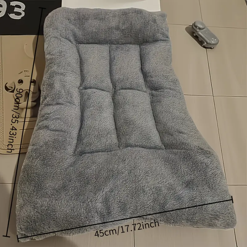 This plush pet bed provides a padded resting surface for pets to rest and lounge. The thickened polyester mat design helps create a soft, cushioned feel. Its low-profile shape is designed to fit into a variety of indoor resting areas. The surface is intended to be easy to wipe or spot clean for routine care.