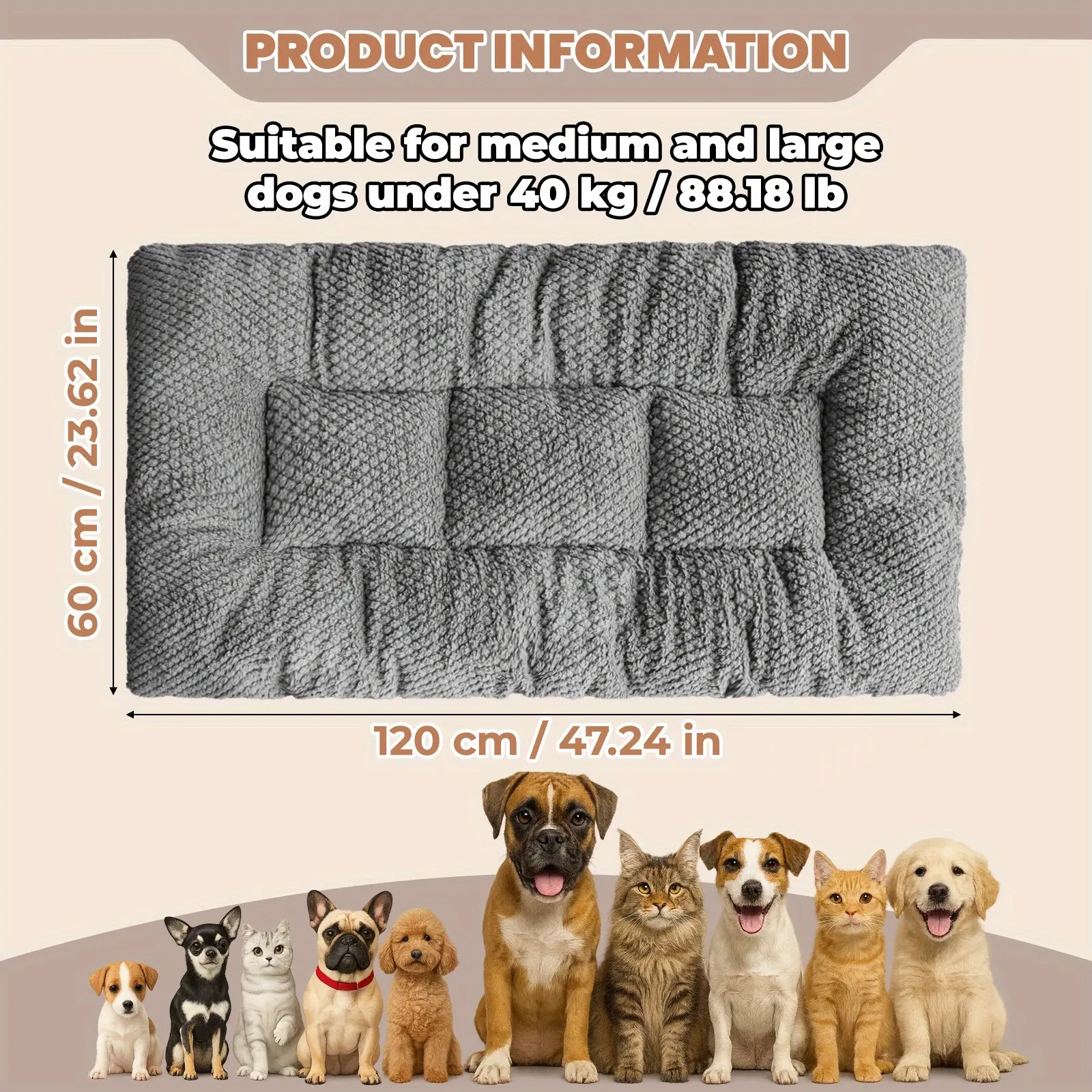 - Rectangular Form Factor: The rectangular shape offers a straightforward layout that fits a range of pet resting spaces.