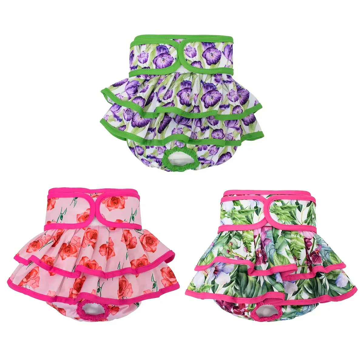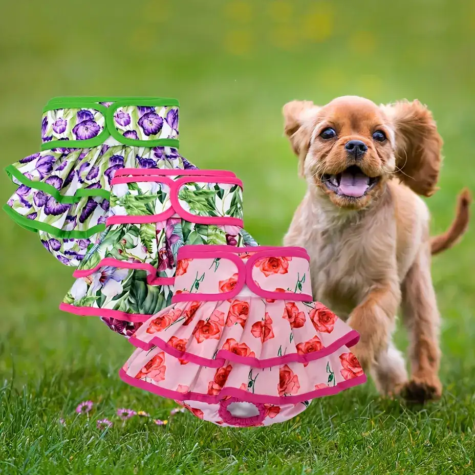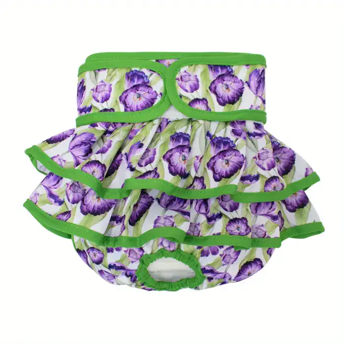 This reusable female dog diaper is designed to help manage heat cycle and incontinence care. The soft polyester fabric is made for breathable, close-to-body wear. A washable construction supports repeated use with routine cleaning. The floral pattern adds a clear, easy-to-identify look for everyday pet care.