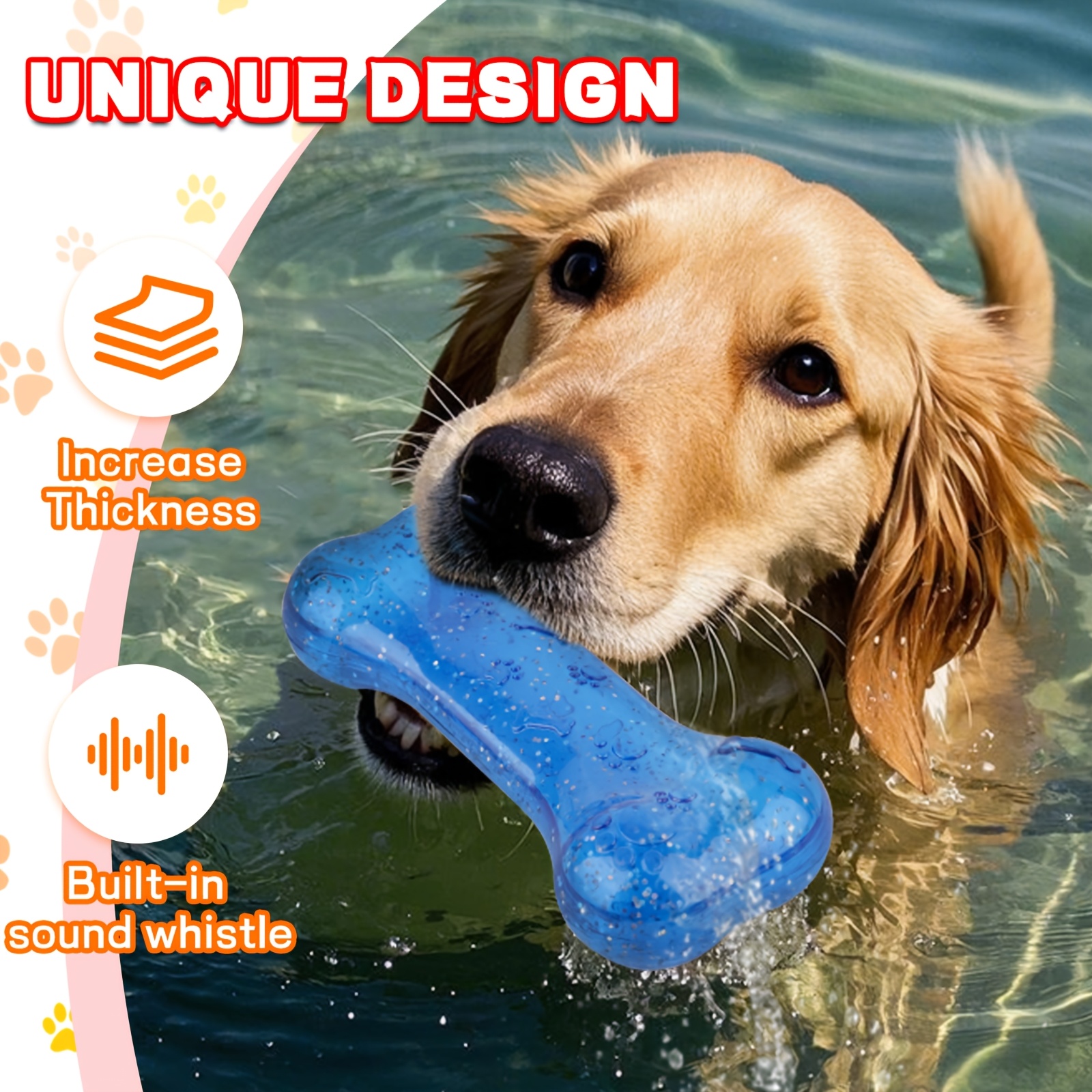 This dog chew toy is designed to make a squeaking sound when bitten to support interactive play. The compact shape is intended for easy grabbing, carrying, and chewing. Its sound-activated design helps keep dogs engaged during playtime. Use under supervision and replace if the toy becomes damaged.