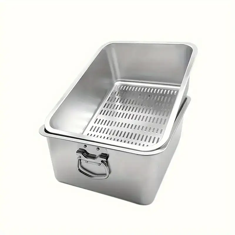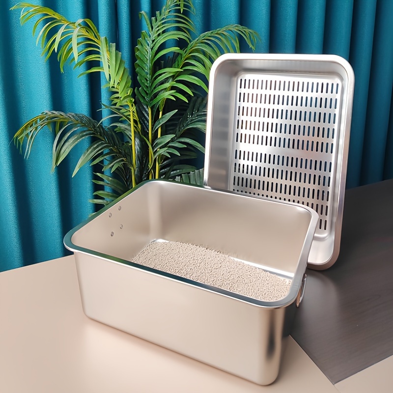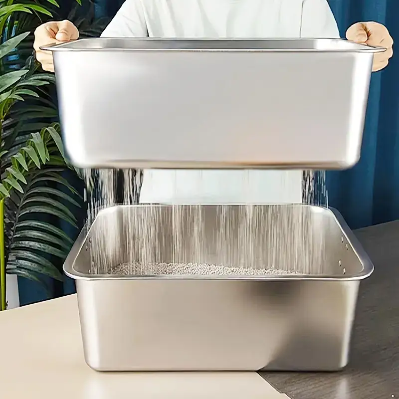 Stainless Steel Cat Litter Box for Containing Litter with Double-Layer Design
