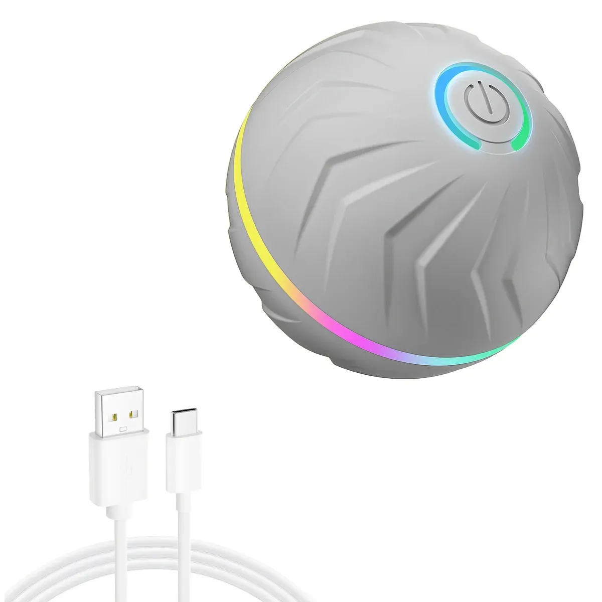 This pet bouncy ball is designed for interactive rolling and bouncing play. The enclosed internal components support motion-based movement to keep the toy active during use. A durable outer shell helps protect the internal parts during play. Rechargeable power allows the toy to be used without disposable batteries.
