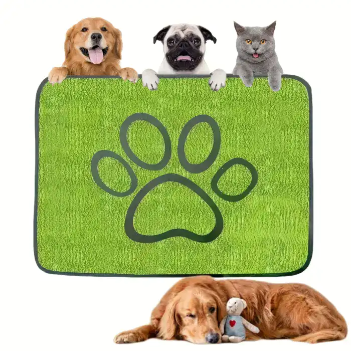 This washable dog pee pad is designed to support potty training and help protect floor surfaces from moisture. The absorbent polyester fiber structure helps manage small spills and routine pet accidents. A non-slip backing helps keep the pad in place during use. The pad is made for repeated use and can be cleaned by machine washing or hand washing.